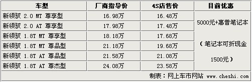 據(jù)4S店銷售人員介紹:目前新領(lǐng)馭全系可優(yōu)惠5000元,較之前優(yōu)惠有所增加,除此之外還可送“3G禮包”,包括一臺HP惠普筆記本電腦。如果不想選擇筆記本電腦,可折現(xiàn)金1500元。目前車源方面,2.0升手動尊享型及1.8T手動尊品型無現(xiàn)車,其余車型現(xiàn)車較充足,預(yù)定需等3-4周時間,銀色、黑色車型等待時間較短。