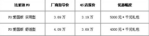 比亞迪F0優惠5000元 搭上購置稅末班車