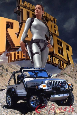 在《古墓麗影》里女主角勞拉的駕馭下,裝備精良的路虎穿山越嶺,造型酷到極點。也許是由于路虎在第一部電影里太過成功的緣故,汽車公司紛紛要求贊助勞拉。在《古墓麗影2》上映的時候,勞拉的強悍戰車換成了戴克萊斯勒公司的吉普牧馬人RUBICON,它在電影里的造型更加夸張。就連牧馬人出場的一幕也顯得很酷,勞拉直接從空中跳傘降落到牧馬人車中,并開著它穿越各種環境極為惡劣的地帶尋找目標,令大批吉普迷為之癡狂。