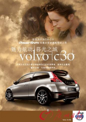 毫無疑問,這是最新出爐的汽車與電影組合。在這部小投入?yún)s大產(chǎn)出的電影中,VOLVO C30時尚、精致的造型和男女主角年輕俊美的外形搭配相得益彰,再加上雨意蒙蒙的畫面,讓人體驗到完美的青春偶像作品應(yīng)該如何書寫。在這部影片中,最迷人的地方不是吸血鬼的神秘世界,也不是結(jié)尾時那場驚心動魄的吸血鬼大戰(zhàn),而是看著神秘而迷人的男主人公愛德華開著精靈般的沃爾沃C30在雨霧中大秀車技。