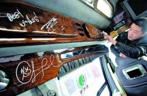 “小皇帝”詹姆斯、姚明隊友“麥蒂”、“大鯊魚”奧尼爾、“蜂王”保羅、“小黑豆”布魯克斯、法國足球巨星亨利、“香港天王”劉德華……司機白先生駕駛著一輛美國進口道奇公羊商務車,每天他都會擦拭著車內這些明星們的簽名,這輛車也成了名副其實的“明星專車”。