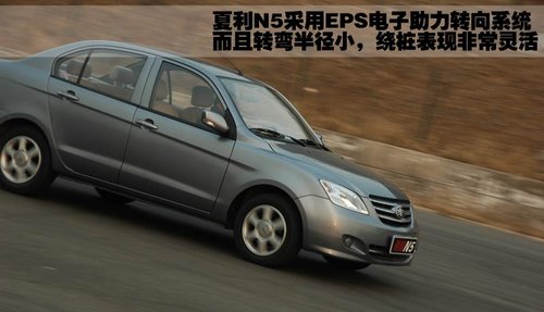 首先進行的測試是蛇形繞樁,本次測試采用了18米樁距,測試車輛將在50-60km/h的時速下穿過。夏利N5率先出發,這款新車怠速在800轉左右,起步非常平穩,不會有明顯抖動現象。夏利N5采用了EPS電子助力轉向系統,而且轉彎半徑只有4.75米,在繞樁過程中表現的非常靈活。而且夏利N5的繞樁的過程中側傾比較小,底盤系統的穩定性非常優秀。