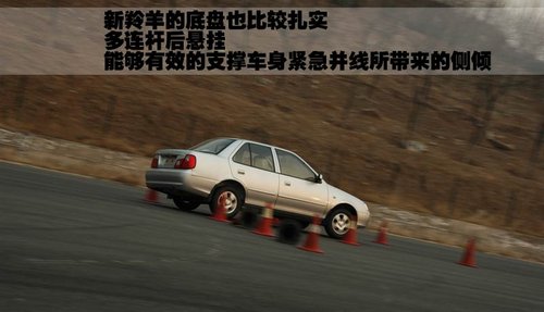 新羚羊的底盤系統比較成熟、扎實,多連桿后懸掛能夠支撐車輛在緊急并線時所帶來的側傾。但新羚羊的輪胎抓地能力略遜于夏利N5,在同樣的速度通過時,輪胎會出現輕微的打滑現象,穩定性略有瑕疵。