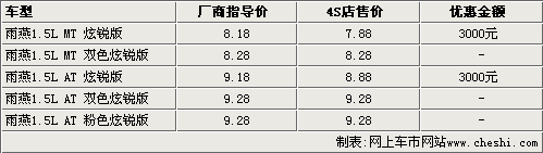 據(jù)長(zhǎng)安鈴木4S店銷售人員介紹,雨燕目前現(xiàn)車并不多,炫銳版手動(dòng)擋和自動(dòng)擋兩款車型目前只能優(yōu)惠3000元。以外,還有手動(dòng)雙色炫銳版,目前只有極少現(xiàn)車,并且沒有任何優(yōu)惠。而自動(dòng)雙色炫銳版和粉色炫銳版目前都沒有現(xiàn)車,預(yù)訂需要等15天左右。