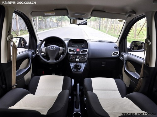 畢竟是和精靈出自同一平臺,哈弗M1的內飾設計與精靈極為相似,只不過在控制臺與中控面板的造型設計有了些變化,看上去比精靈更為簡潔、清晰,而全黑的材質配色似乎也在提醒著人們不要小看它的運動性能。而座椅與車門內飾板上的米色裝飾也為避免了車內陷入過于沉悶的尷尬。