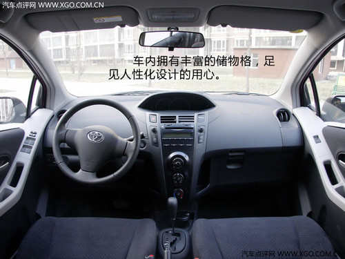 雅力士的內飾設計是典型的豐田NBC風格——中置儀表盤,這使得方向盤前看上去十分空曠,也會讓初次使用的用戶感到稍有不適。雅力士車內最讓人稱道的地方在于其設計了大量的儲物格,對于總苦于手邊零碎小玩意沒處放置的人來說,無疑是最貼心的設計了。