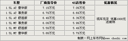 據長安汽車4S店銷售人員介紹,目前兩廂版悅翔現車比較齊全,不過部分顏色現車較少,有意購買的朋友還需從速,全系車型優惠1000元。如有時間到店看車詳談,除了基本優惠外還可以贈送裝飾。