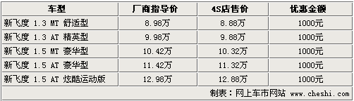 時尚精致的外觀,精細的內飾做工,省油是飛度這款日系小車持續熱銷的原因。3月1日起,廣汽本田調整了飛度4款車型的售價,重新調整后的售價比原來的廠商指導價上漲了400元——3000元。目前消費者購車優惠幅度在1000元左右,具體車型見下表: