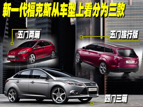 新一代福特福克斯從車型上看分為三款,分別是五門兩廂、四門三廂和五門旅行版車型。新款福克斯的外觀設計與嘉年華車型十分相像,這也體現了福特品牌全球"kinetic"的設計理念。新一代福特福克斯代表著福特汽車公司的全球通用的C平臺第三代和第四代的車身設計風格。