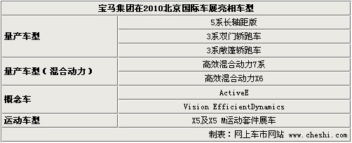 這次BMW在2010北京國際車展上,共將推出5款量產車型,其中包括3款汽車版車型,另外還將展示2款混合動力車型。這2款混合動力車型分別是高效混合動力X6與高效混合動力7系,它將傳統汽油機與高效電動機完美組合,達到低排放、高效能的作用。另外3款量產車型我們都比較熟悉,新3系雙門轎跑車、新3系敞篷轎跑車與5系長軸距版。如果說BMW混合動力車型只是為了展示未來技術及未來車型理念的話,那這3款汽油版車型著實離我們更近。