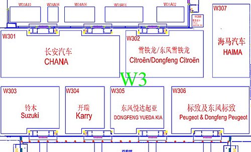 在W3館內,鈴木、起亞、標致、雪鐵龍及其合資公司分布在館內。在新車方面,鈴木將發布其中級車Kizashi,起亞則有豪華車Cadenza。而在自主品牌中,長安和海馬選擇了W3館,其中長安汽車將有全新概念車和新能源車登場,而海馬SUV-騎士將在車展正式上市。