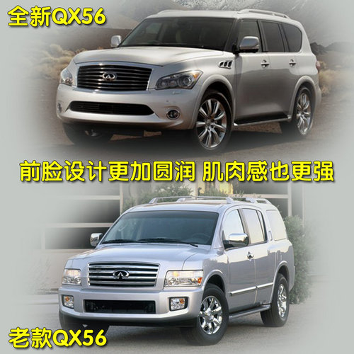 新款QX56外觀方面,厚實的引擎艙,具有力量感的鍍鉻進氣格柵和翼子板透氣孔都在暗示著這款新車強大的動力系統。從整體設計上講,只有林肯領航員能有如此的氣勢。但從側身上來看,新QX56較老款更為圓潤,體現出了英菲尼迪一貫的優雅感。