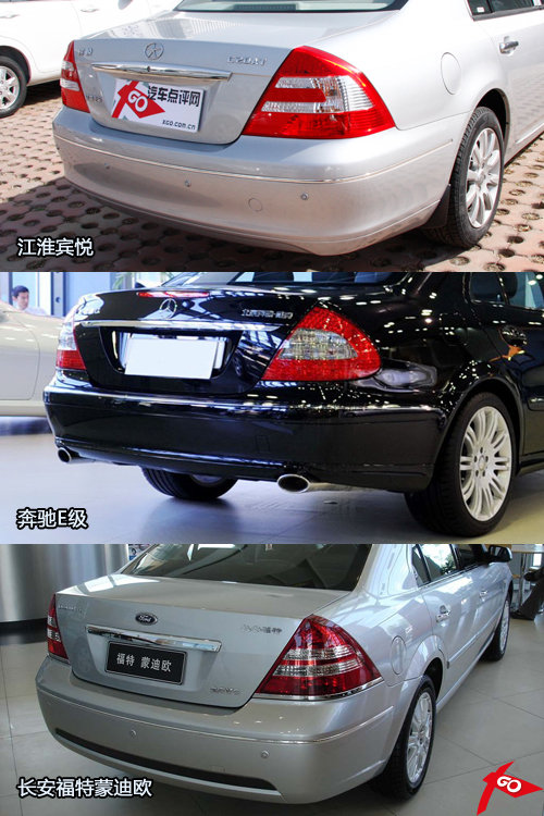 至少編輯我感覺江淮賓悅很大氣,不過如果你對汽車車型比較熟悉的話,第一眼從側面看到它你會認為是臺福特的老款蒙迪歐,從尾部看去是臺奔馳E級,走到車前……奔馳S級……