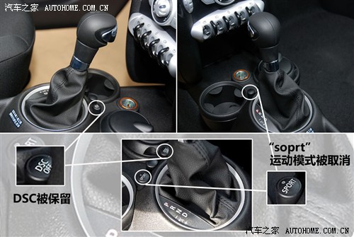 最核心的部位沒有什么不同,1.6升自然吸氣發動機,它有一點小小的吵,似乎僅僅是為了證明自己的個性,動力對于MINI如此小巧的車型來說也算不上是充足,幾款使用相同發動機的MINI經我們的測試0-100km/h成績都在12秒以上。MINI Cooper Cheer搭載的還是6速手自一體變速箱,但不同的是變速桿前方“SPORT”的小按鈕不見了,不過當您在D擋時把檔把向左移,還是可以進入“S”模式。