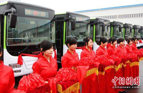 中新網重慶6月11日電 (記者 郭晉嘉)11日,重慶首批50輛新能源氣電混合動力公交車交付該市公交集團使用,一輛車每年可節約燃氣近萬立方米。