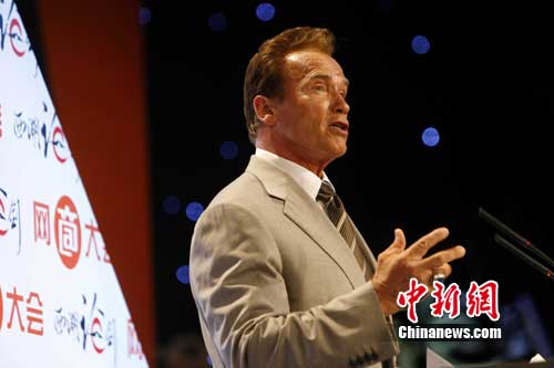 中新網杭州9月11日電(記者 夏毅)9月11日,第七屆網商大會在杭州舉行,美國加州州長阿諾德•施瓦辛格做了主題演講并與阿里巴巴董事局主席兼CEO馬云進行了現場對話。施瓦辛格對阿里巴巴為美國加州提供了2萬個工作機會表示感謝,并希望今后阿里巴巴能夠在加州擴展業務。