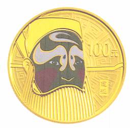 1/4盎司彩色圓形金質紀念幣背面圖案為表現廉潔清正、疾惡如仇的“包拯”京劇臉譜造型(局部彩色),并刊“包拯”中文字樣及面額。1/4盎司彩色圓形金質紀念幣為精制幣,含純金1/4盎司,直徑22毫米,面額100元,成色99.9%,最大發行量30000枚。