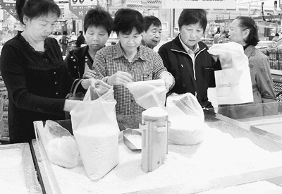 25日是廈門市定向供應“優惠大米”的第三天,記者看到在大潤發超市糧油優惠專柜前擠滿了前來買大米的市民。家住蓮坂小區的馬阿姨一次就買了3大袋優惠米。她說,家里5口人吃飯,全靠她2000多元的退休金生活,還得照顧兩個身體不好的兄弟,平時的開銷都得精打細算,原來買的都是1.8元左右的米,現在市場都見不到了,所有大米基本上都漲到2元多。聽說政府為保障低收入群體生活,特供這種“優惠大米”,她早早趕來購買。