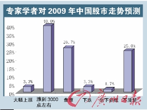 對(duì)于今年的形勢(shì),54.2%的專家認(rèn)為宏觀經(jīng)濟(jì)形勢(shì)將保持平穩(wěn)發(fā)展;80%的專家認(rèn)為房地產(chǎn)市場(chǎng)將繼續(xù)調(diào)整;40%的專家認(rèn)為股市將恢復(fù)上漲到3000點(diǎn)左右……