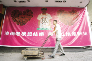 不怕嘲笑打出橫幅征婚