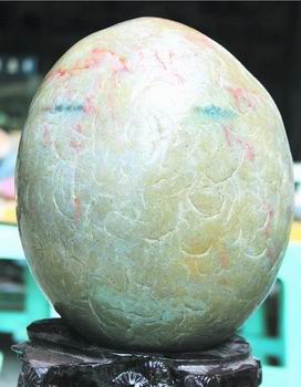經專家鑒定,這塊石頭是罕見的玉化了的“五彩云紋石”,非常難得,通常只有四川岷江才有,價值在5萬至8萬元之間。(侯莉 成都商報記者 何東 攝影報道)