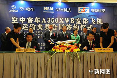 同日,天津賽象科技股份公司憑借其在空客天津總裝廠A320系列飛機運輸夾具制造上取得的經驗和成績,一舉拿下轉包生產合同,成為空中客車A350XWB寬體飛機運輸夾具的首個中國供應商。