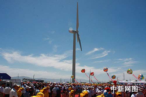 國家發(fā)改委副主任、國家能源局局長張國寶今天在開工儀式上說,受風(fēng)能資源與電力市場分布不平衡的影響,中國風(fēng)電的開發(fā)建設(shè)受電力市場制約很大。為此,采取了“建設(shè)大基地、融入大電網(wǎng)”的發(fā)展方式,在風(fēng)能資源最豐富的區(qū)域建設(shè)千萬千瓦級風(fēng)電基地,打造“風(fēng)電三峽”。酒泉風(fēng)電基地是率先建設(shè)的首座千萬千瓦級風(fēng)電示范基地,已核準(zhǔn)建設(shè)項(xiàng)目的總規(guī)模500萬千瓦,今后還將建設(shè)第二期工程。