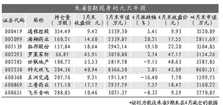 記者發現,在剛剛過去的4月份,9只股票的整體表現也跑贏了大盤指數,9只股票中漲幅最大的海翔藥業上漲超過20%,漲幅第二的拓邦股份則上漲19.10%,有4只股票的漲幅在10%以內,而下跌的僅有3只。