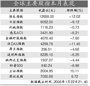 2009年的第一個交易日,道瓊斯指數曾大漲258點,報收于9034.69點,然而,這也成為截至目前的最高點。在隨后的近三周中,道瓊斯指數不斷下跌,本周二更是暴跌4%,收于7949點。即便是周三道指反彈3.51%,今年以來,道指最大跌幅也已高達9%,納斯達克指數累計最大跌幅高達8.7%。