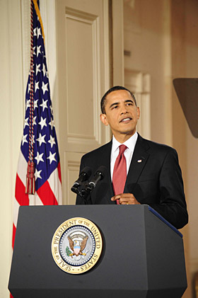 美國總統貝拉克·奧巴馬9日晚舉行就任以來首次黃金時間段新聞發布會。