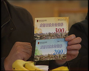 胡大全正在享受的是金堂縣以培訓(xùn)促進(jìn)就業(yè)的優(yōu)惠政策:免費(fèi)入讀由縣勞動(dòng)局開辦的培訓(xùn)班學(xué)習(xí)技術(shù),在金堂縣,承擔(dān)這項(xiàng)任務(wù)的有一個(gè)就業(yè)訓(xùn)練中心,兩所技術(shù)學(xué)校,以及像白果鎮(zhèn)制鞋培訓(xùn)班這樣的,深入到各鄉(xiāng)各村的流動(dòng)培訓(xùn)班,一旦有30人報(bào)名就可立即開班,從2008年9月至今,全縣已有2025名返鄉(xiāng)農(nóng)民工參加了培訓(xùn),基本上每個(gè)班結(jié)業(yè)時(shí),廠家都會(huì)直接到現(xiàn)場(chǎng)招人。