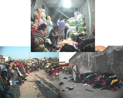記者發(fā)現(xiàn),每包舊衣服都有七八十件,襯衣、毛衣、外套、褲子應(yīng)有盡有,但幾乎沒有哪兩件衣服是同樣的款式,而它們共同的特征是都有不同程度的磨損,有的衣服上面有著非常明顯的污漬,還有的衣服連商標上面的字跡都已經(jīng)無法辨認,衣服上還散發(fā)著一股難聞的腐臭味。但商販表示,自己的衣服都是國外的知名品牌,并且在舊衣服里屬于中上等貨色。