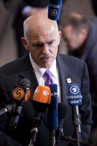 5月7日,希臘總理帕潘德里歐抵達(dá)比利時(shí)首都布魯塞爾歐盟委員會(huì)總部后接受采訪。歐元區(qū)16國領(lǐng)導(dǎo)人7日晚間在布魯塞爾召開特別峰會(huì),評(píng)估各國議會(huì)對(duì)2日啟動(dòng)的希臘救助機(jī)制的審批情況,并重點(diǎn)討論如何加強(qiáng)歐元區(qū)經(jīng)濟(jì)治理以及強(qiáng)化對(duì)成員國的財(cái)政監(jiān)督問題。 新華社發(fā)(莫納斯攝)