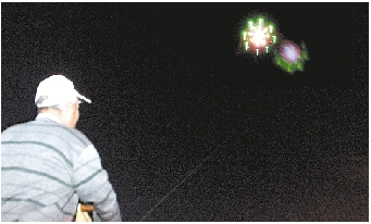 根據不明飛行物大概的方位,記者跟著“飛行物”方向一路尋找,發現不明飛行物就在火車頭體育場上空附近,體育場內有人在放夜風箏。原來燈光是夜風箏上夜光設備不斷地發出不同顏色的光。