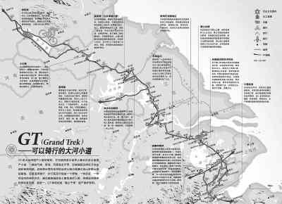 “大河小道”, 全稱大運河遺產小道,英文譯名Grand Trek,縮寫為GT,由中國文化遺產研究院特邀研究員齊欣首先提出。它北起北京白浮泉,中途分別西經河南洛陽(隋唐通濟渠),東經山東南旺,南抵寧波鎮海招寶山甬江口炮臺,是一條世界上最長的世界文化遺產小道。它將把大運河沿岸的現有道路串連起來。但它并不是已經成型的,而是需要每個人通過自己的行走和定位去貫通的。它是通過戶外的時尚概念,弘揚一種“探索”、“分享”和“奉獻”的精神,從而吸引更多的公眾參與到大運河遺產保護的過程中。