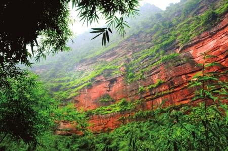 屏山縣雙河口安家崖是典型的丹霞地貌