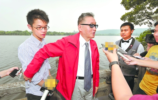 昨天下午,杭州劉莊,只睡了4個(gè)小時(shí)的李敖在接受完省領(lǐng)導(dǎo)接見(jiàn)、媒體訪問(wèn)和午餐以后,本來(lái)已經(jīng)回房午休了,結(jié)果中途他拉著兒子的手出來(lái),兩個(gè)人悄悄地走到湖邊欣賞風(fēng)景。那時(shí),留在劉莊的記者所剩不多,看到父子兩個(gè)親昵交談的背影都有點(diǎn)不好意思上前打擾。終于有人鼓起勇氣和李敖搭話,他就感慨:“我們一家人其實(shí)從來(lái)沒(méi)一起出來(lái)旅游過(guò),這次以后也許也沒(méi)有更多的機(jī)會(huì)了。”記者被感染了,舉起相機(jī)為他們父子在湖邊留下合影。