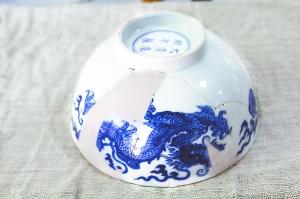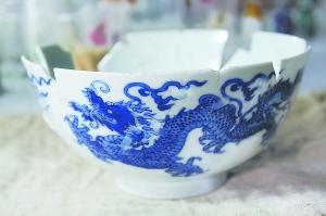 “這件文物就是在我手中獲得重生的!敝驹刚吲随面谜f,她從3月26日開工,拼出來的第一件瓷器就是這個雙龍戲珠碗。至今,她還清楚地記得,那天剛好是6月16日端午節。