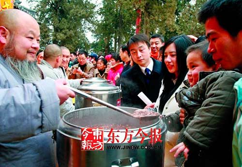 約1萬(wàn)碗臘八粥,兩小時(shí)被搶食一空。1月3日,少林寺的“臘八喜施粥慈心會(huì)少林”活動(dòng),讓無(wú)數(shù)游客驚喜萬(wàn)分,暫時(shí)中斷或改變游覽行程,到少林藥局前領(lǐng)取一次性的紙碗,嘗嘗加了少林秘制藥汁的臘八粥。