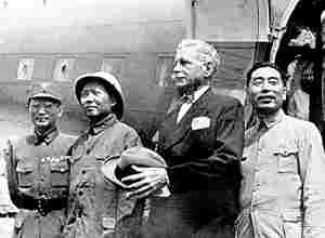 1945年8月28日,毛澤東赴重慶談判。臨行前,他換了換裝,穿上了葉劍英特地給他買的皮鞋和在北京給他訂做的一套藍灰色中山裝。江青到蘇聯醫生阿拉夫那里為毛澤東借來了一頂禮帽。周恩來上上下下打量毛澤東這身裝束,毛澤東說:“怎么,嫌我穿得太洋氣?”周恩來說:“不,我是看主席戴的帽子好像有點小!闭f著,摘下自己頭頂上的盔式太陽帽遞給毛澤東:“主席,你戴上這頂試試,重慶的日光是很強烈的!泵珴蓶|接過太陽帽戴上,不大不小正合適。周圍的同志也說好。毛澤東風趣地說:“恩來,我可奪人所好啰!”并問周恩來:“你戴什么呢?”周恩來說:“我還有,再說,重慶我比你熟,總可以搞到一頂,這頂就送給你吧。”于是,毛澤東就戴上這頂盔式太陽帽登上飛機,去了重慶,并在重慶機場留下了一張頭戴盔式禮帽的歷史照片。