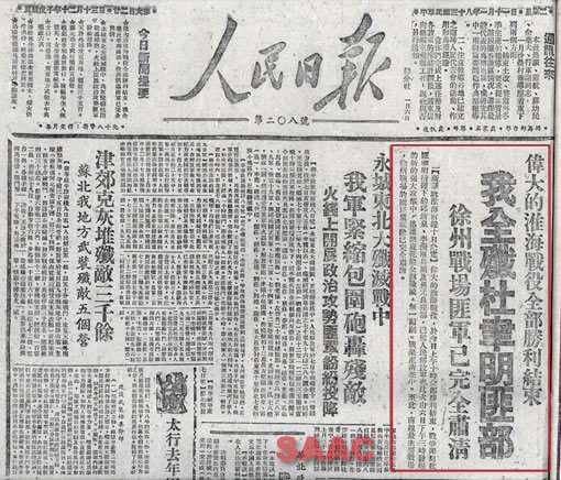 4.1949年1月11日,《人民日報》關于淮海戰役全部勝利結束的報道