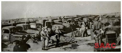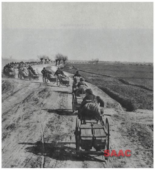 12.淮海戰役中,中原人民支援我軍彈藥、物品的架子車隊