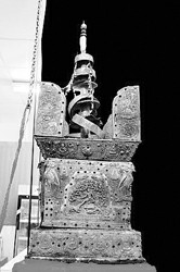 目前,南京方面也已委請(qǐng)宗教界人士選擇吉日開塔,暫未確定開塔時(shí)間。阿育王塔出函后,被安放在南京市博物館地下庫房?jī)?nèi)一個(gè)特制的密封玻璃罩內(nèi)進(jìn)行過渡性保護(hù)。“新家”保持了和出土地宮內(nèi)相同的溫度和濕度,但由于“塔王”埋藏地下千年,塔內(nèi)木托已經(jīng)部分變形,塔座邊角出現(xiàn)破損縫隙,鑲嵌塔身上的近100顆珠寶發(fā)生散落。由于金棺銀槨遇到水易氧化,骨質(zhì)文物易起霉變,文物專家更擔(dān)心的是出現(xiàn)進(jìn)一步損壞。“不請(qǐng)出金棺銀槨就無法知道它的密封狀況,所以唯一的辦法就是請(qǐng)出,這樣有利于文物保護(hù)。”