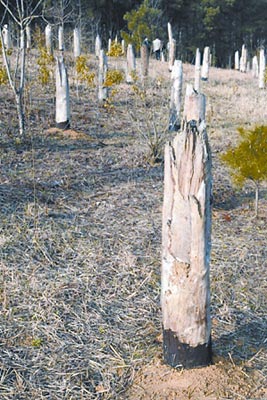 幾分鐘過后都溪林場(chǎng)馬家塘林區(qū)方圓400多畝的松樹林被成片成片地?cái)r腰截?cái)啵谝粭l斷續(xù)長(zhǎng)約3公里、寬150米至300米的帶狀區(qū)域里只留下1.5米至4米高的樹樁并且折斷的樹干與樹冠大多都向西傾倒,長(zhǎng)兩公里的四個(gè)林區(qū)的一人高的粗大樹干整整齊齊地排列在林場(chǎng)上。有的斷樹之間又有多棵安然無恙,個(gè)別幾棵被連根拔起,還有周圍的一些小樹有被擦傷的痕跡。