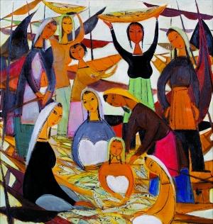 拍賣現場,《漁獲》作品估價是300萬至350萬港元,結果被一亞洲藏家以1634萬港元拍得。這一成交價不僅位于此場拍賣首位,且再次刷新了畫家個人世界拍賣紀錄。而成交價位于第四的朱沅芷的《最后晚餐》也以602萬港元打破畫家個人世界拍賣紀錄。