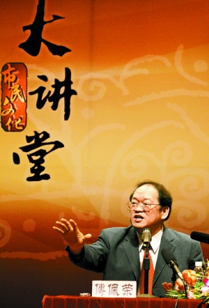傅:父母親現在很年輕,孩子很小,他拼命培養,但是他沒有想到,孩子太杰出的話,晚年就很冒險了。為什么?杰出的孩子,恐怕要為天下人服務去了。像在臺灣就有一個例子,一對老夫婦,生了八個孩子,全部到美國去,最小的那個都拿到了碩士,還有一個院士,都很有成就,但是兩老沒有人管,最后他們子女說,到美國來吧。他們去了一年就回來了,說不愿意當游牧民族,這一家住一個月,那一家住兩個月,這怎么是人的生活呢。就回到臺灣去,最后老太太過世,留一張條子給她先生,你還是跟我走吧。最后老先生也過世了。像這樣的故事,你看了就會說,這一對老夫妻,年輕的時候,好好地培養他們的孩子,孩子長大之后要孝順你,他也是兩面為難。因為是一個人才,他就不能只顧自己,要負責實驗室里面的東西,要替很多人策劃。