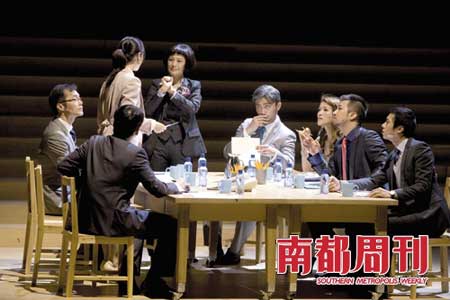 林奕華:5·12地震后,我跟張艾嘉聊天,提到我在內(nèi)地巡演時(shí),看到許多二線城市都在“追”建筑、城市建設(shè)等,要把它弄得更像一個(gè)一線城市。大家都覺(jué)得城市好,因?yàn)榭梢赃_(dá)成許多事情。我們想要達(dá)成什么?那就是我們的欲望。當(dāng)欲望不容易實(shí)現(xiàn)時(shí),就產(chǎn)生焦慮和不安全感。地震來(lái)了后,大家開(kāi)始反省城市是否應(yīng)走得那么快。這是個(gè)很城市化的問(wèn)題,而城市里上班族最多。其實(shí),上班族在這部戲里也是一種比喻,不完全是針對(duì)上班族這群人,而是指現(xiàn)代人,探討城市人為什么會(huì)生活得不快樂(lè)。