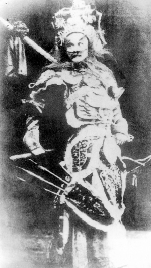 1957年,我們爺倆演出的這部戲在上海中蘇友好大廈錄像。我在臺上一亮相,啪,大的燈光直直射向我,嚇我一跳。據說錄像是當時為了局勢,對臺灣宣傳,表明我們對藝術和藝術家的重視。