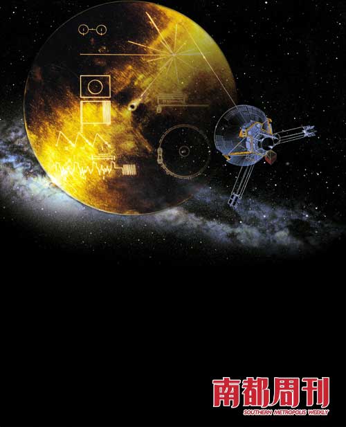 兩艘“先驅(qū)者號(hào)”飛船上都安裝有一個(gè)金屬板,它可謂是地球人送給外星人的“名片”。金屬板的左側(cè)刻有太陽系的圖案;右側(cè)刻有一個(gè)男人和一個(gè)女人的圖像,男人在招手致意;下方刻有太陽及太陽系九大行星的編碼。在兩艘“旅行者號(hào)”飛船上都裝有送給外星人的“郵包”:一個(gè)圓形鋁盒,里面放著一張鍍金視聽光盤。讀取光盤數(shù)據(jù)的說明寫在鋁盒的蓋子上。光盤上收錄了 115張圖片,介紹了地球文明最重要的一些資料 (如中國萬里長城、脫氧核糖核酸的分子式等);錄有地球人用 55種語言向外星人發(fā)出的簡短問候;存有 35種聲音信息;還有地球人的音樂文化(如巴赫的作品、爵士樂、中國名曲《高山流水》等)。