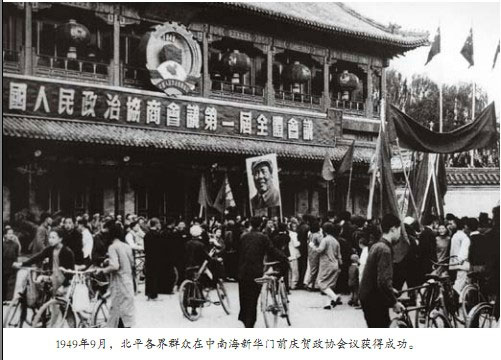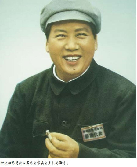1949年9月21日晚,中國人民政治協商會議第一屆全體會議在中南海懷仁堂隆重開幕。出席開幕式的包括各黨派、團體代表634人和來賓300人。當毛澤東以沉穩、緩慢的語調莊嚴宣告“我們的工作將寫在人類的歷史上……我們的民族將再也不是一個被人侮辱的民族了,我們已經站起來了”時,會場里,所有人的眼里都閃爍著淚花。